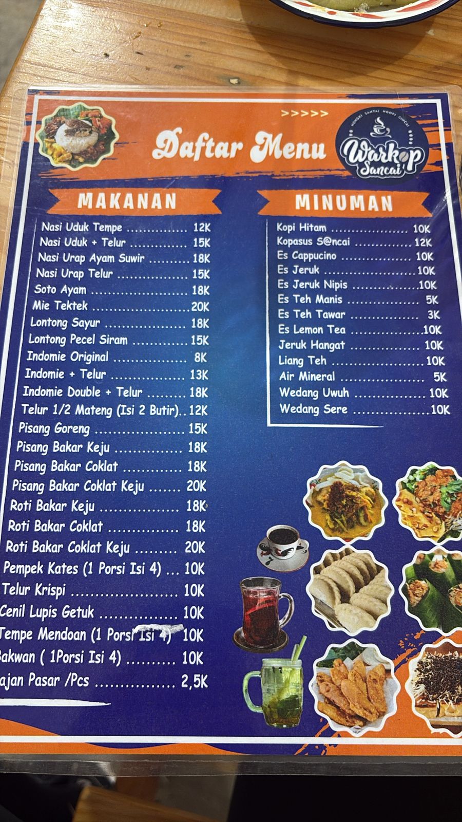 Warkop Sancai menyediakan berbagai macam menu mulai dari Nasi Uduk, Soto Ayam dan Cemilan dengan cita rasa dijamin menggoyang lidah.